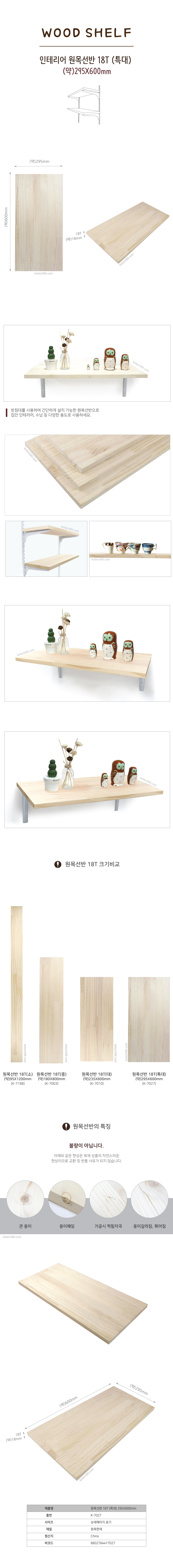 품 명 : 원목선반 18T (특대) 295X600mm