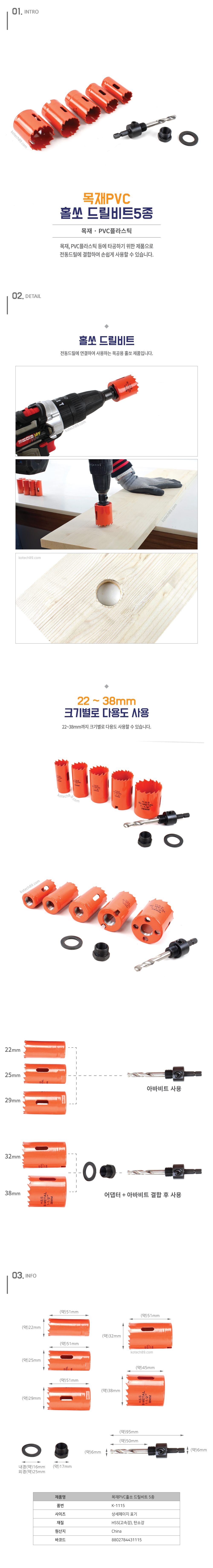 품 명 : 목재PVC홀쏘 드릴비트5종