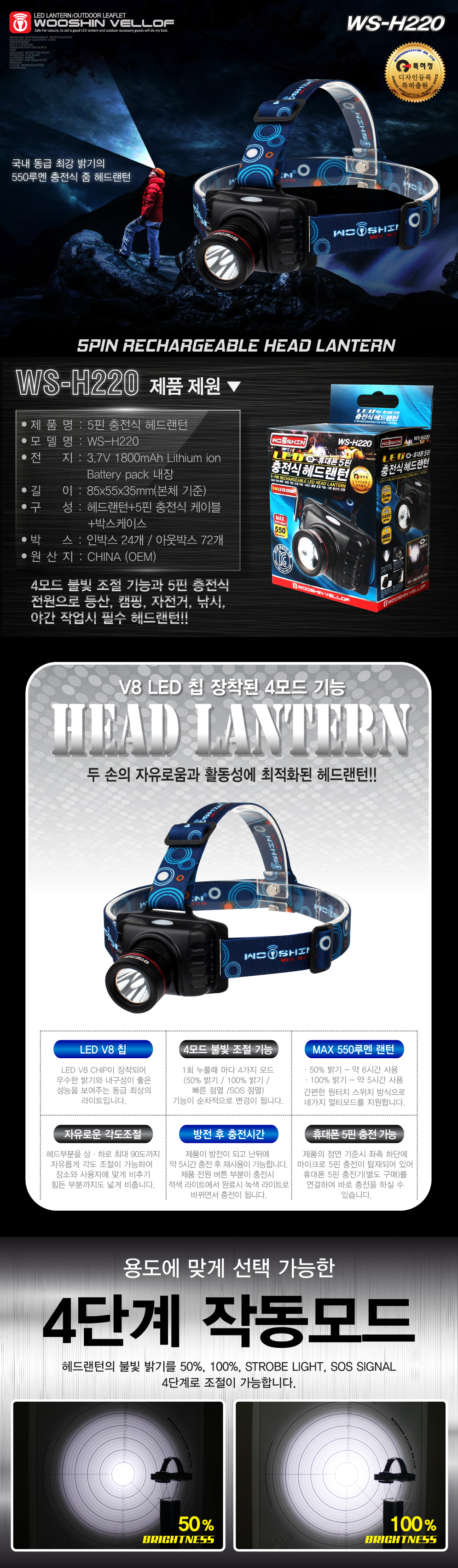 품 명 : 충전식 헤드 랜턴