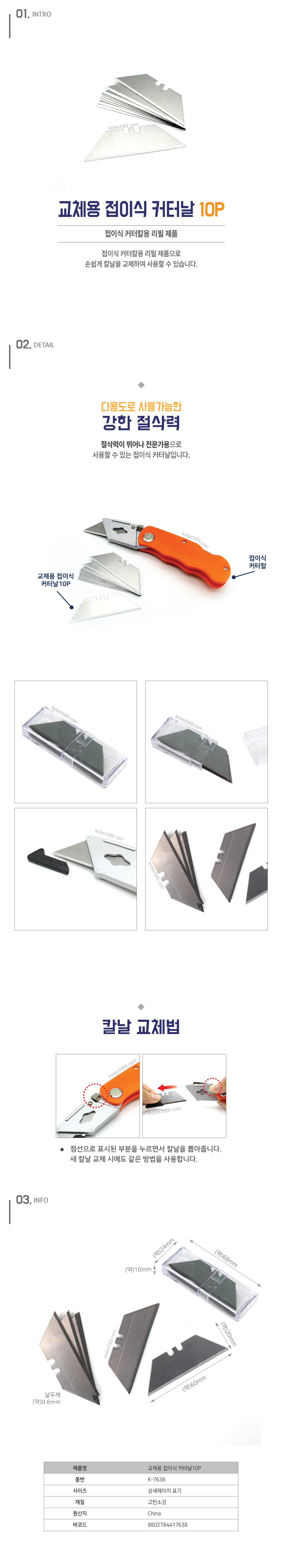교체용 접이식 커터날10P