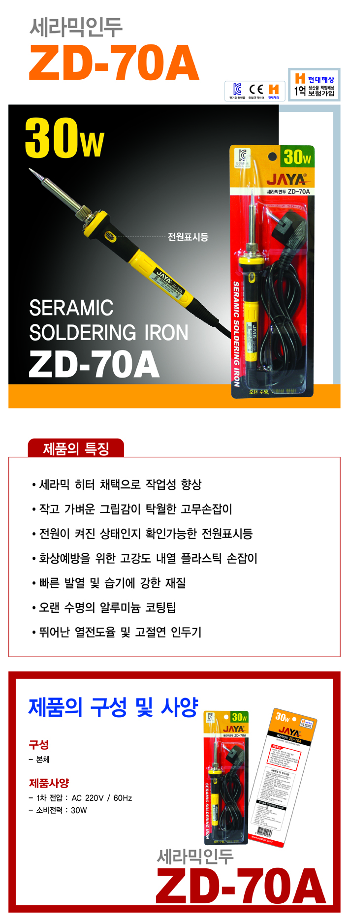 품 명 : 전기인두 세라믹<ZD-70A>