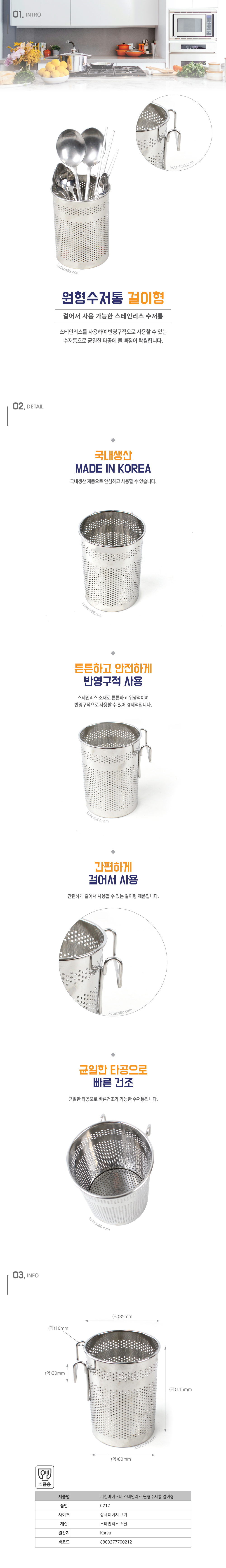 품 명 : 키친마이스터 스테인리스 원형수저통 걸이형