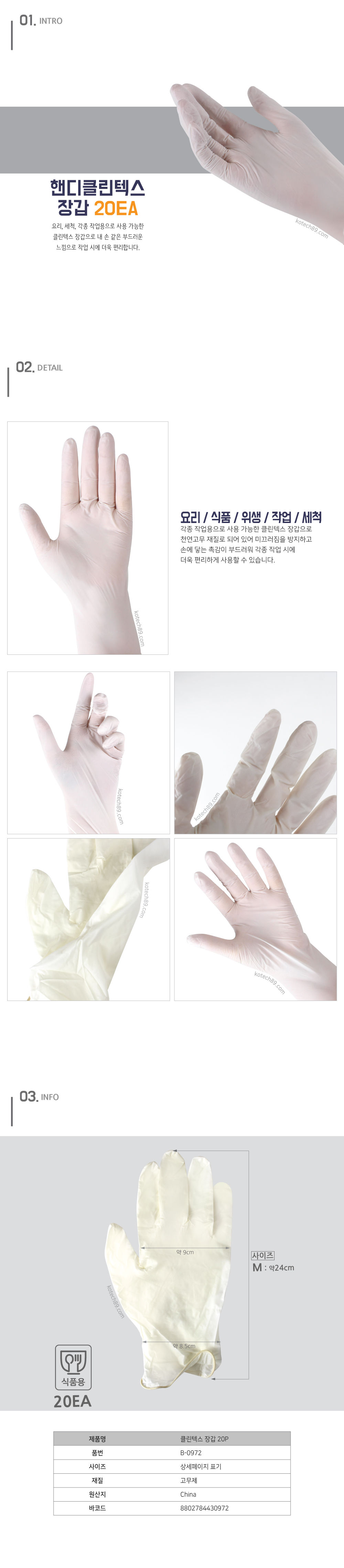 품 명 : 핸디클린텍스 위생장갑 20매입