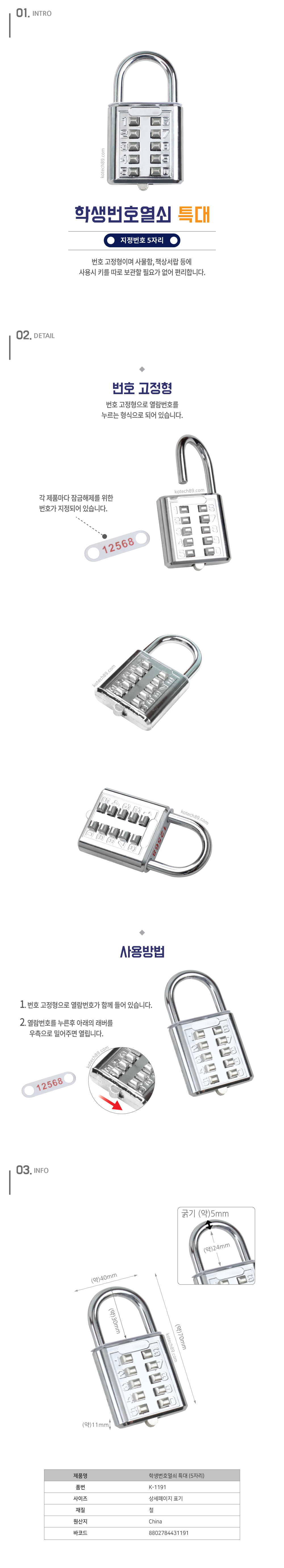 품 명 : 학생번호열쇠 특대(5자리)