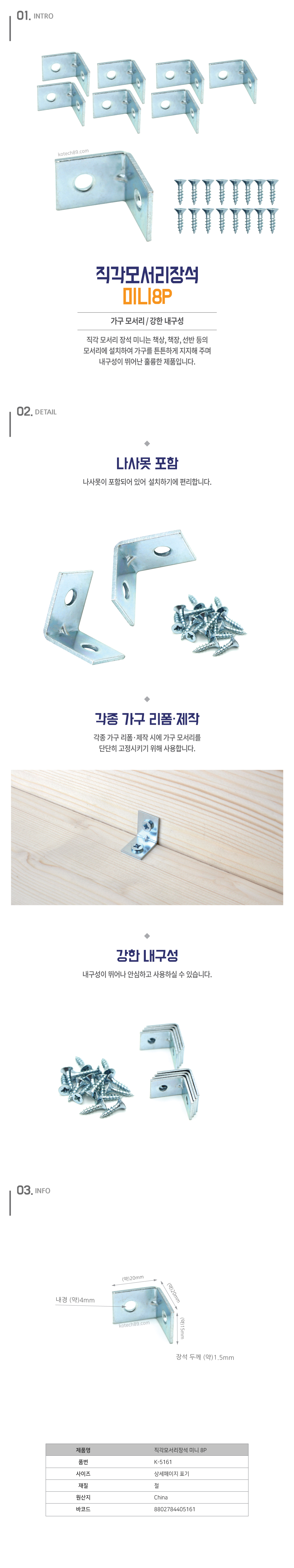 품 명 : 직각모서리 장석 미니8P