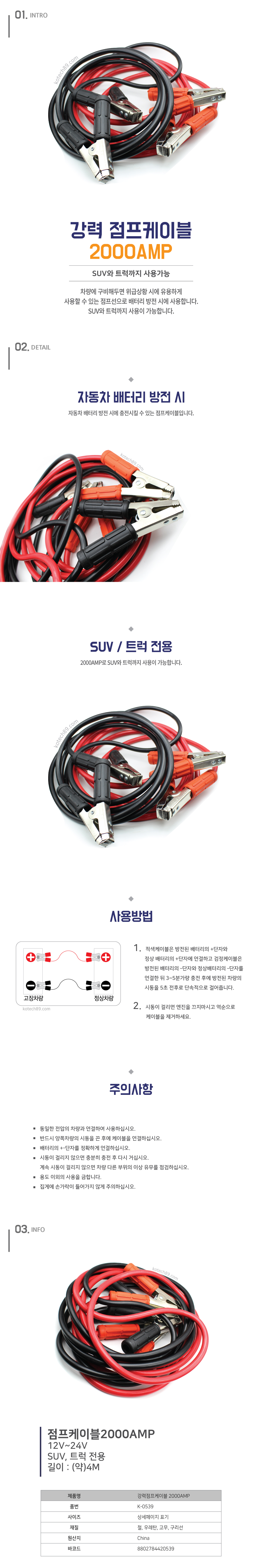 품 명 : 강력점프케이블 2000AMP (점프선)